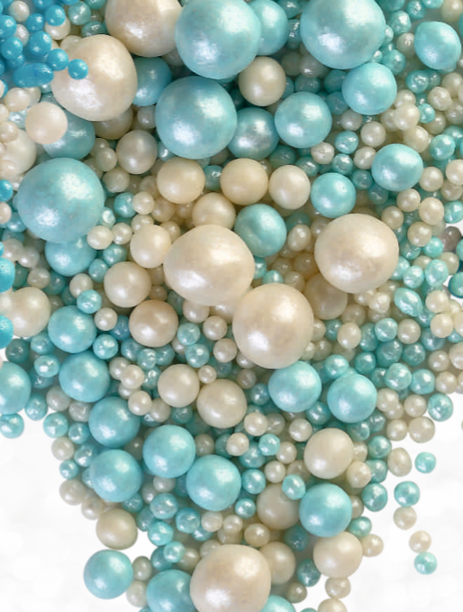 195 Драже зерновое в цветной кондитерской глазури (ЖЕМЧУГ «БИРЮЗА», СЕРЕБРО) 1,5 кг