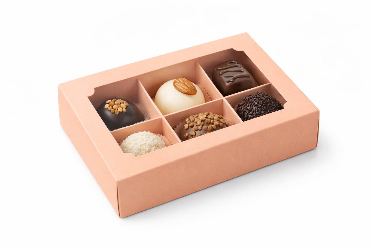Коробка для 6 конфет с окном персиковая 165*120*30 мм