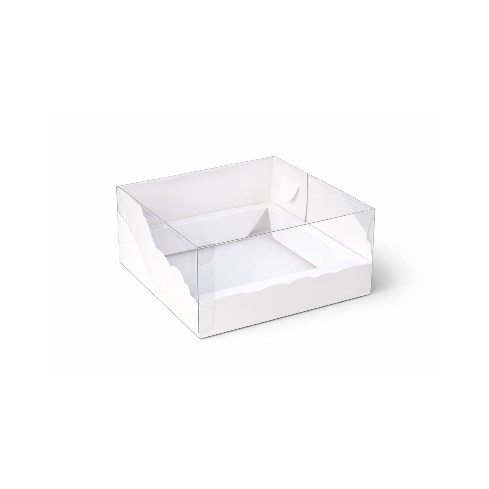 Коробка для торта «Бенто» с пластиковой крышкой, 170*170*100 мм — компактная коробка из белого пищевого картона формата дно + прозрачная пластиковая крышка для мини-тортов на 1–2 порции. Высота 10 см позволяет упаковать бенто-торт с невысоким декором, при этом жёсткое дно и прозрачная крышка обеспечивают удобную транспортировку и «витринную» подачу.