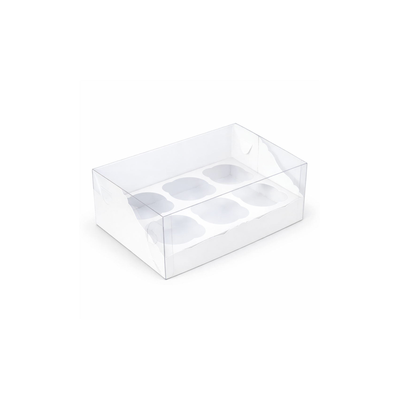 Коробка на 6 капкейков Белая с прозрачной крышкой 245х155х100 мм