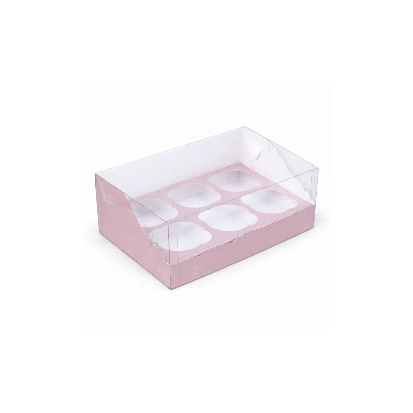 / Коробка на 6 капкейков с прозрачной крышкой Розовая 245х155х100 мм