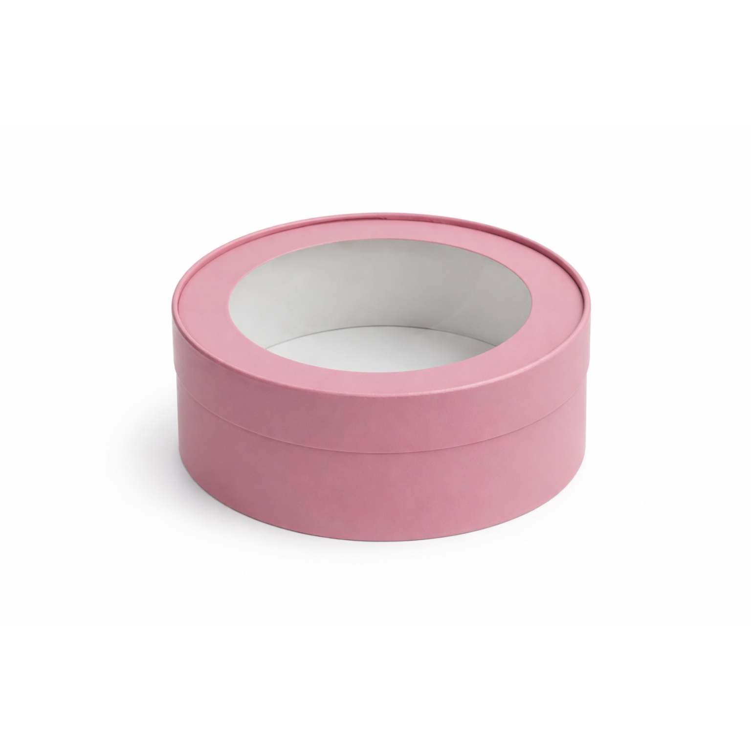 Розовая круглая шляпная коробка с окном — стильная и практичная подарочная упаковка, подчёркивающая ценность содержимого.